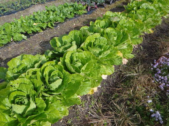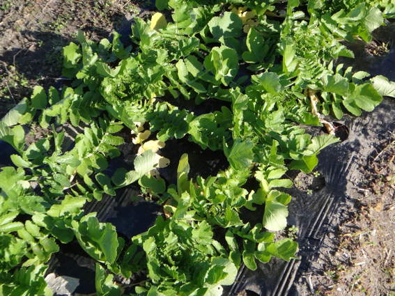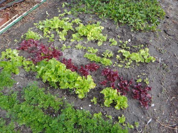 苗床で大きくなっているリーフレタスたち