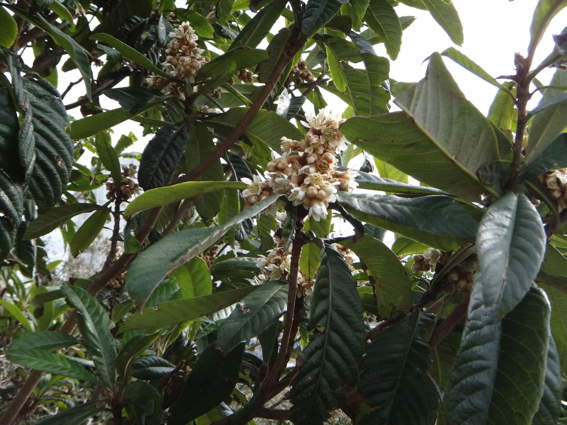 ビワの花が開花しました グミ同様目立ちませんけどね