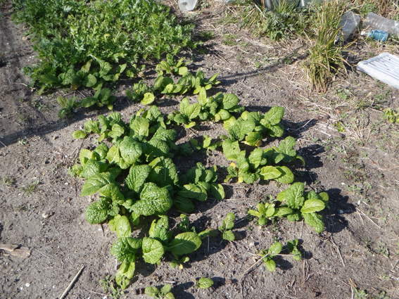 ホウレンソウもちょっと密植しすぎですが 間引きながら収穫です