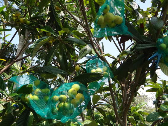 袋の効果はあったようで ビワが色づいています
