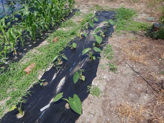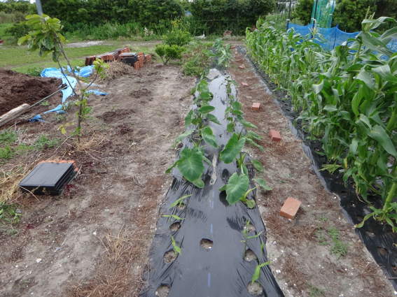 少々水不足気味ですが 里芋も大きくなってきました