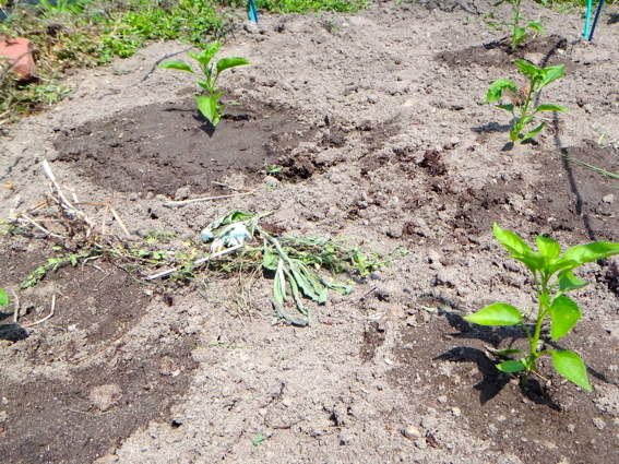 2週間前に移植した落花生ですが ちょっとボロボロです
