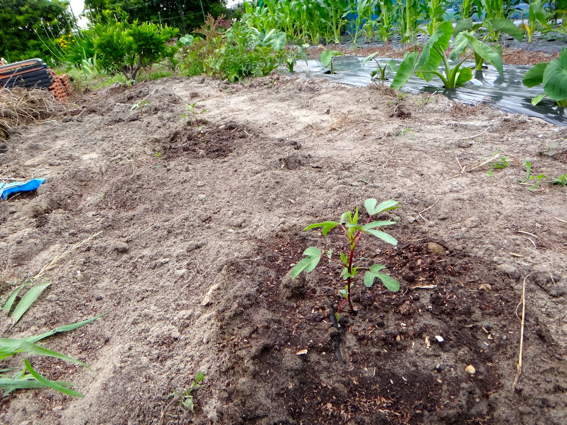 ローゼルハイビスカスの苗を2本移植しました