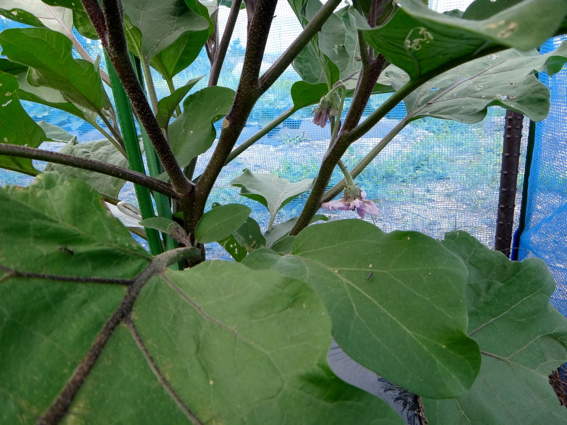 米なすの一番花が咲きました ちょっと遅いですね
