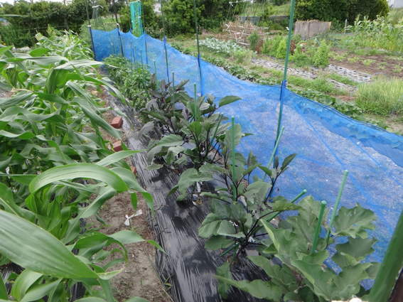 別の角度から トウモロコシに靴下を被せてあるでしょ