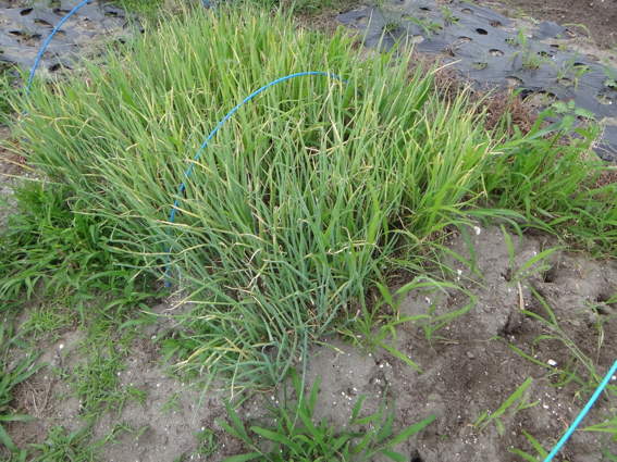 何とかサビ病から回復しつつある根深一本ネギの苗です
