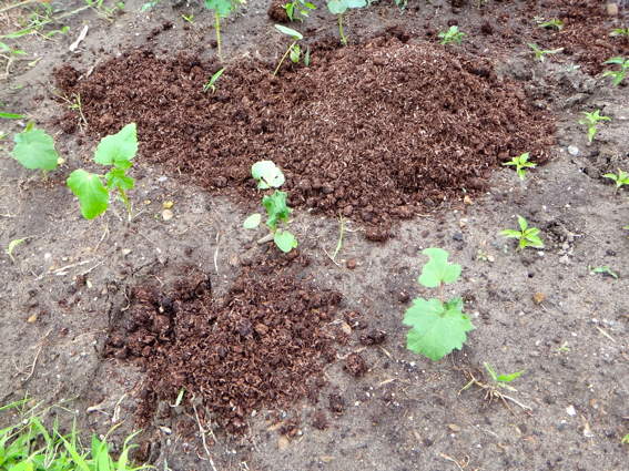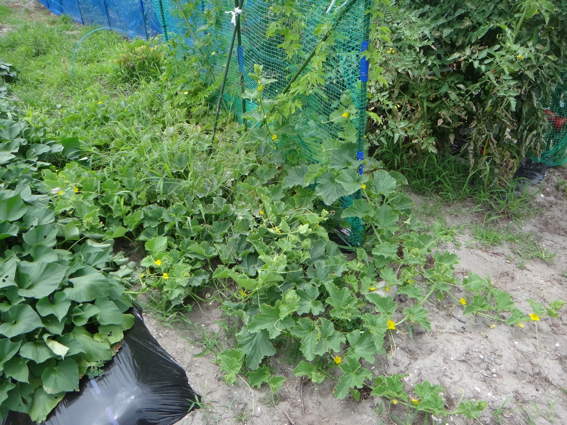 ウリハムシに葉っぱを食べられてますが 順調に成長するカボチャたち