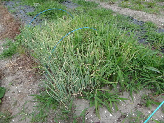 ニンニクを収穫しました ここで風乾しています