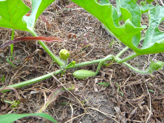 スイカが出来はじめました 一番でかいのは拳よりも大きいのですが