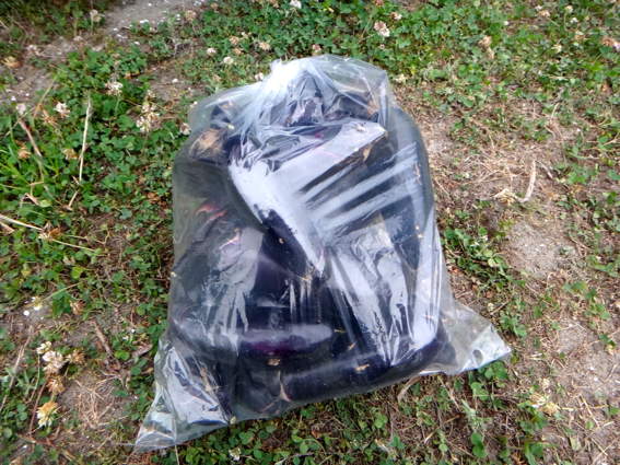 ナスですが ちょっと光ってわかりませんね 沢山収穫した ということで