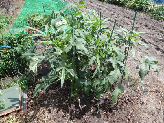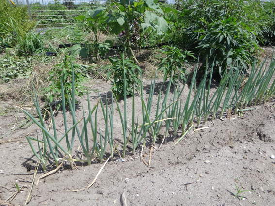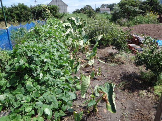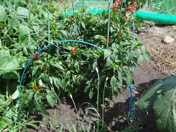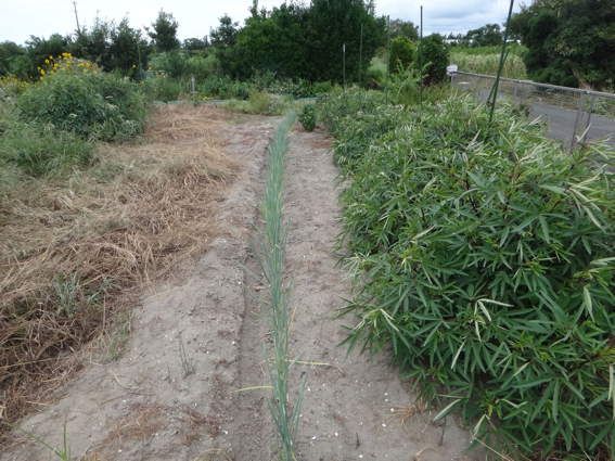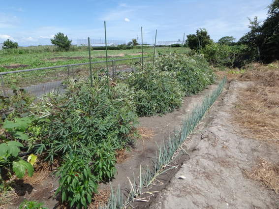 手前は根深一本ネギ その向こうに鷹の爪が植えてあります