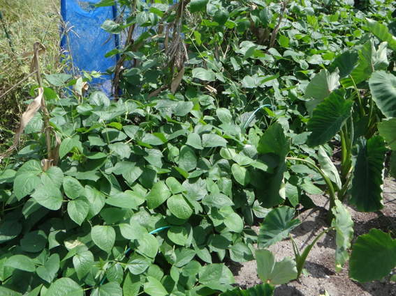ササゲがどんどん生長して里芋に襲いかかっていますので