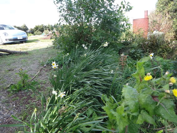 家の南側に咲いている水仙です ゆり様が畑の方に