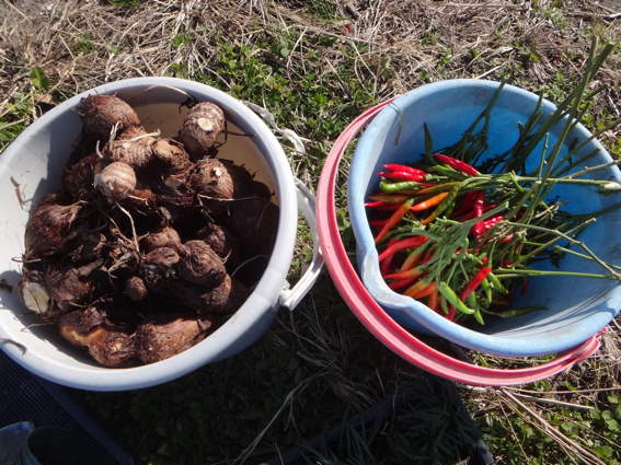 忘年会用の里芋を掘りました 鷹の爪も欲しい学生にはあげよう