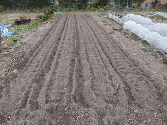 翌朝残りの2畝をやって全部でレッドムーン150個を植えました