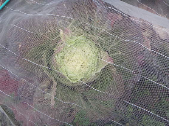 ちょっと遅かったのですがキャベツに布をかけました