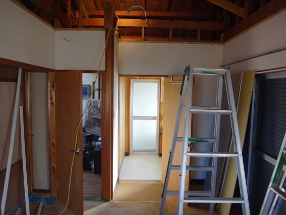 つり天井を新調し 壁にクロスを貼ってもらいます