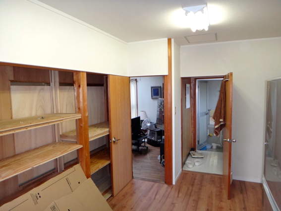 左側の棚をペンキで塗ってからオフィスに置いてある