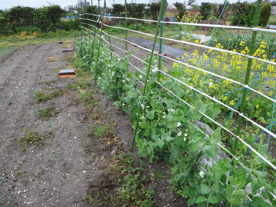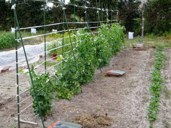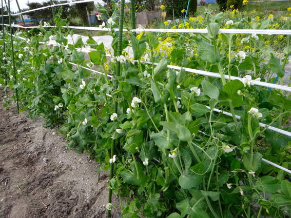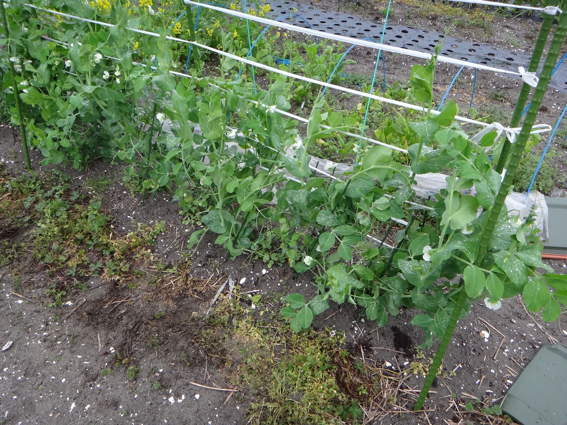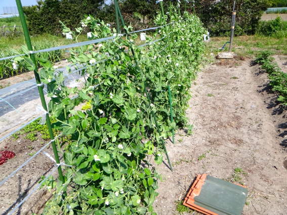スナップエンドウ 手前のは病気みたいで ちょっと暗雲が…