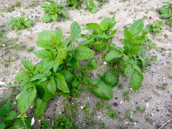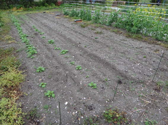 昨年の秋ジャガを種芋にしたところも芽が出てきています