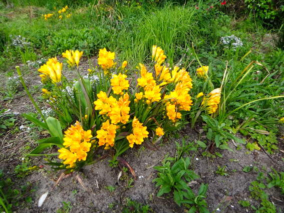 ゆり様が安城から移植したフリージアが元気いっぱいです