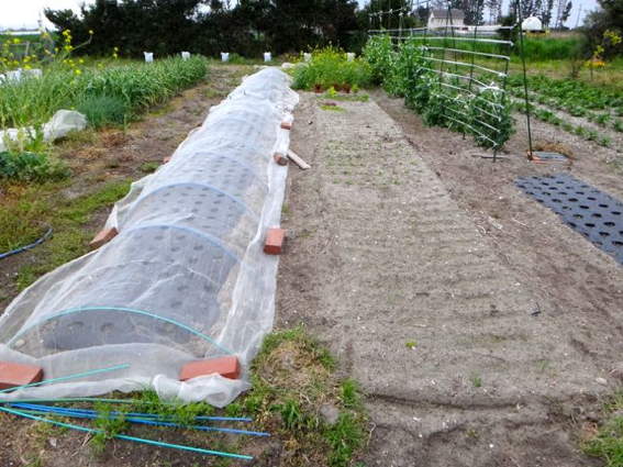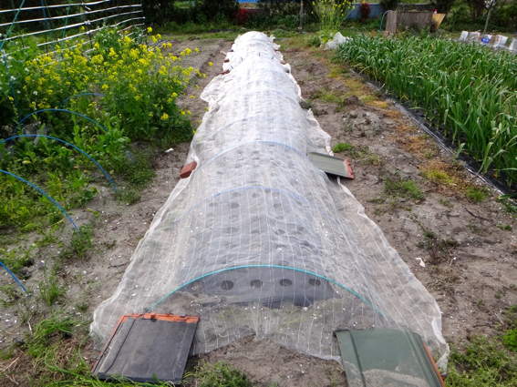 枝豆の種を蒔きました 鳥に食べられないように防虫ネットを被せました