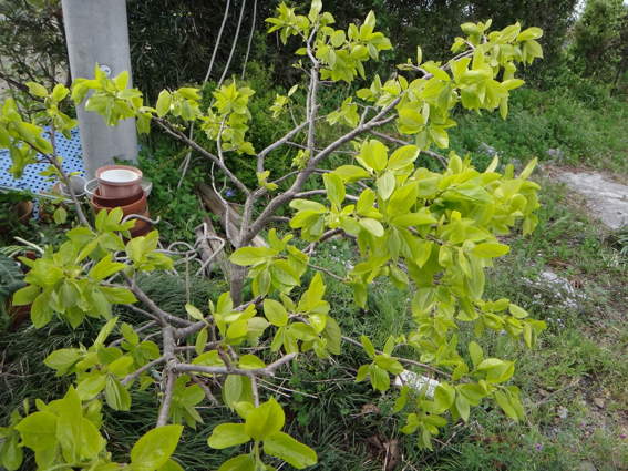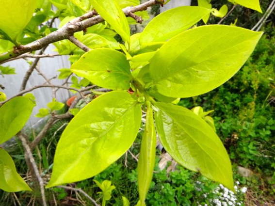 次郎柿の若葉も出てきました 今年は何個できるかな?