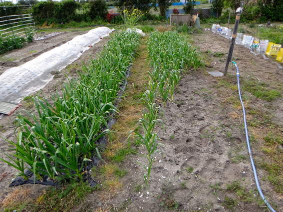 ちょっとサビ病にかかり始めて心配なニンニクたちです