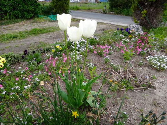 ゆり様はこの白いチューリップを植えた覚えがないようです