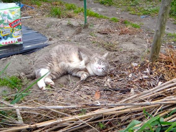 れが農場ネコです 昨夜も現れて エサくれってうるさかったので