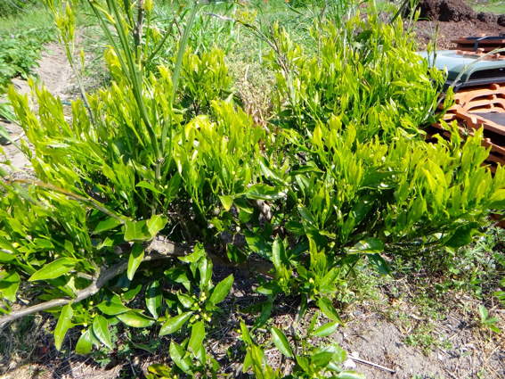 オレンジにも新芽が出てきました いつも葉っぱが縮れてしまうので