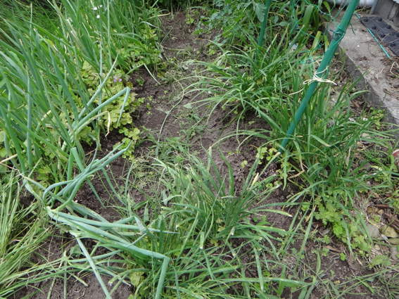 その後 根深一本ネギを植えるために溝を掘り5センチ間隔で