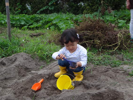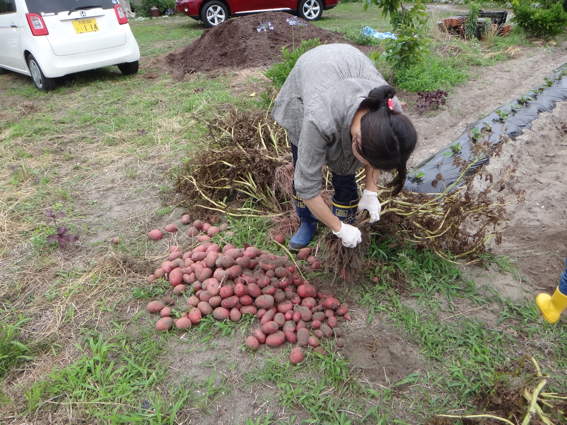 その前に4畝中2畝だけ娘に芋掘りして貰いました