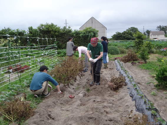 それから農場にやって来ました 落花生の周囲の雑草取りをやり