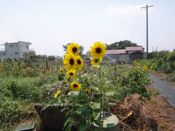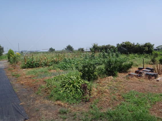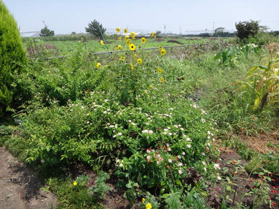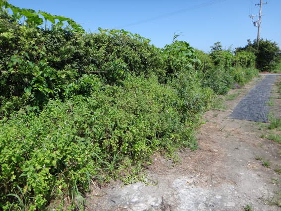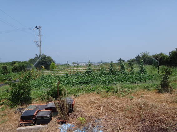 いかにも暑そうな農場風景 手前は先週除草剤を撒いたところです
