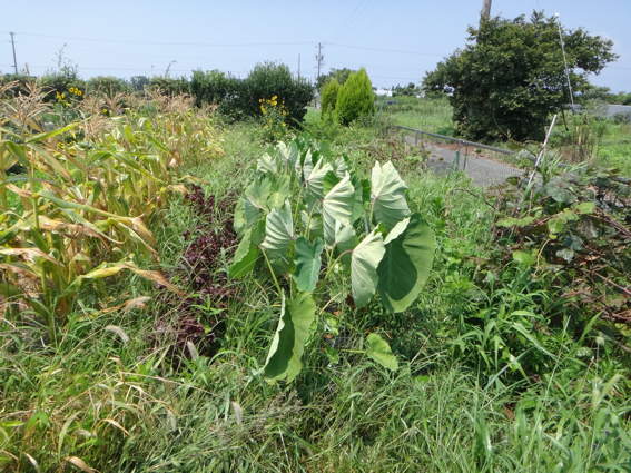 里芋の面倒まで見る暇がありません 新しい芽を埋めた方が良いのですが