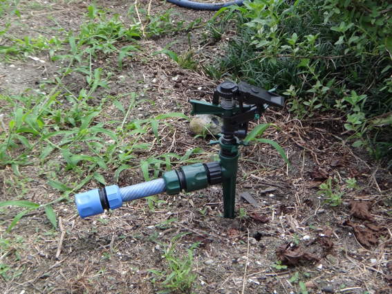 デッキの近くにも散水できるように移動型のスプリンクラーを設置しました