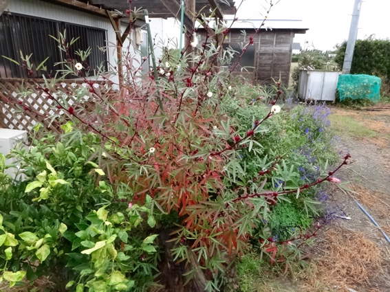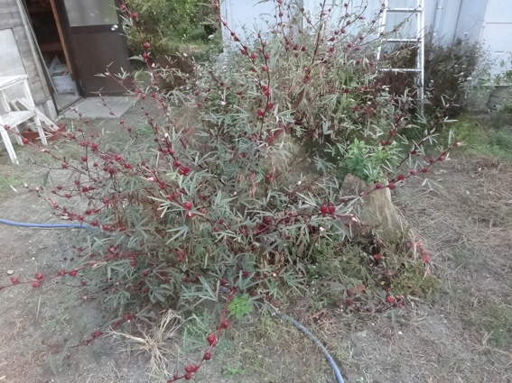これも別種のローゼル 今度来た時に収穫を始めます