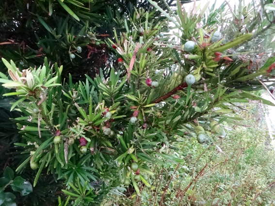 槇の木に実が沢山なっていました 赤い部分が少しだけ甘いんです