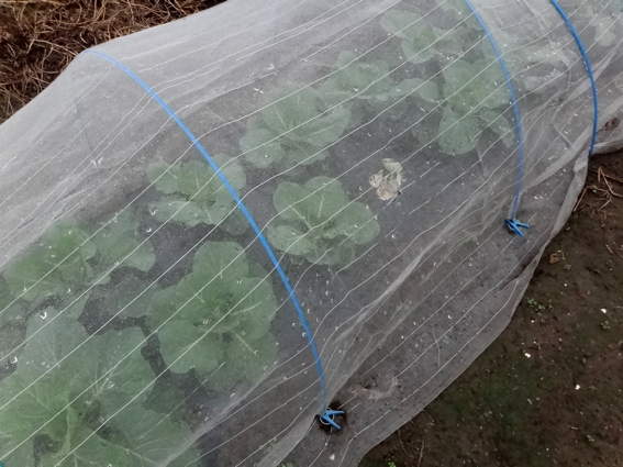 これはキャベツです 防虫ネットなので見にくいですね