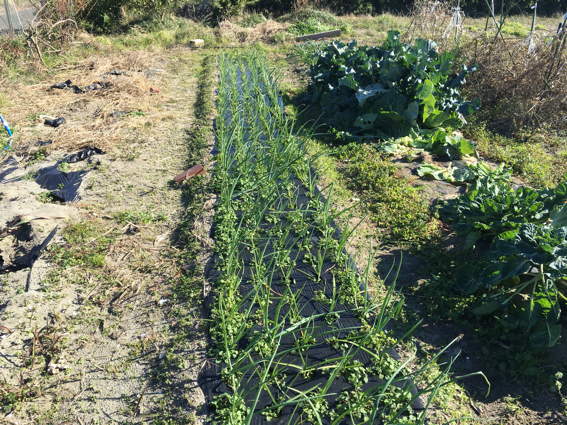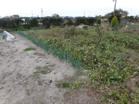 タマネギ畑の雑草取りをしなくては おっと肥料をあげるのを忘れた
