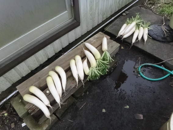 大根も収穫しました 葉っぱにアブラムシが密生していたので