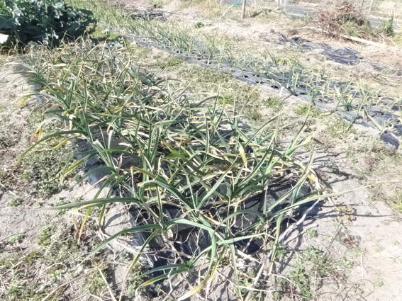 ここは基本的にタマネギ畑ですが 所々にニンニクも植えてあります