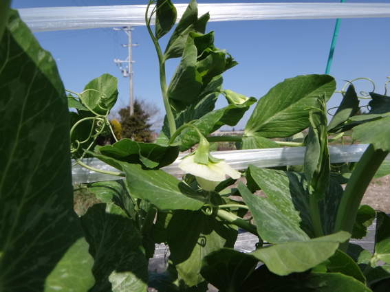 スナップエンドウの花が咲き始めました まだまだですけどね