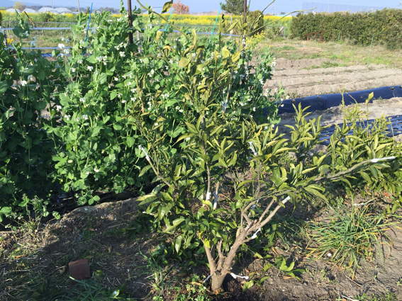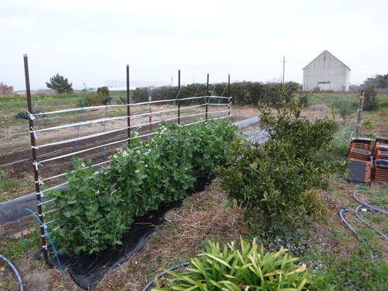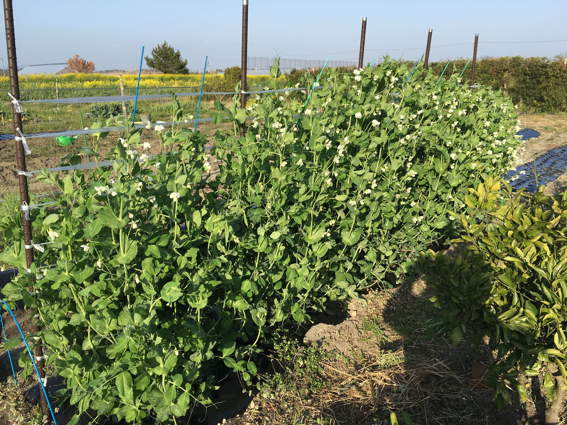 スナップエンドウ畑 今度来たときはミカンの接ぎ木もやります