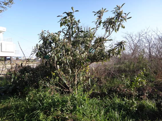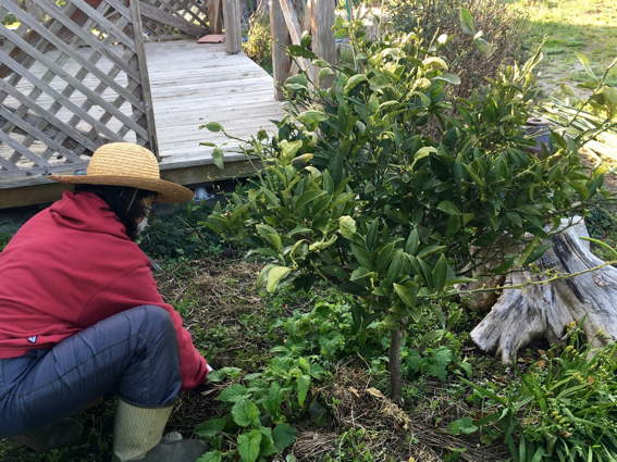 雑草を引き抜くゆり様 横の木はオレンジですが