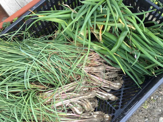エシャロットの初収穫です 甘味噌で食べると美味しいですよ