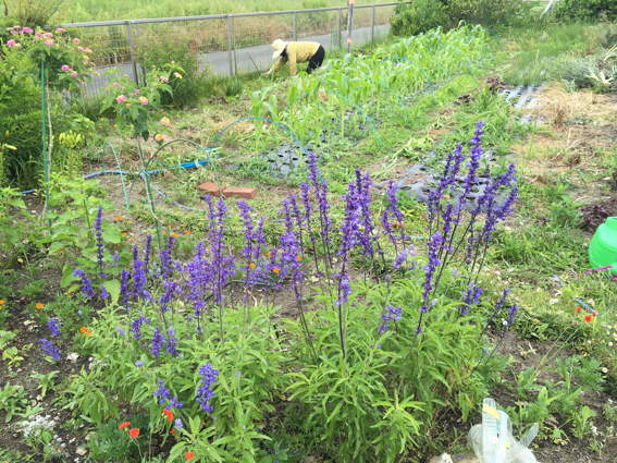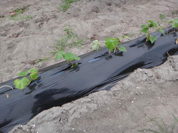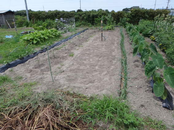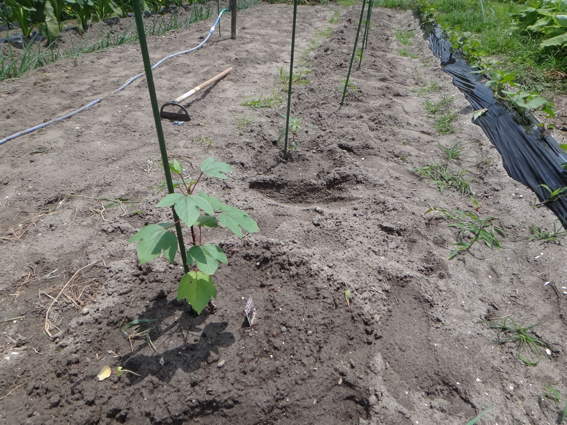 朝8時過ぎに一人で農場に向かいました 昨日サツマイモの苗を