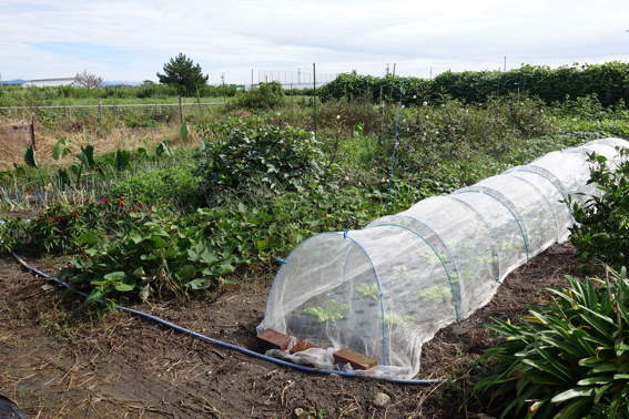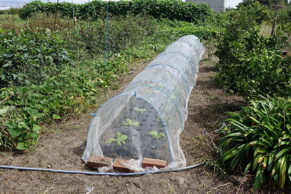 先週 取りあえず買っておいた苗を植えて防虫ネットで保護しました