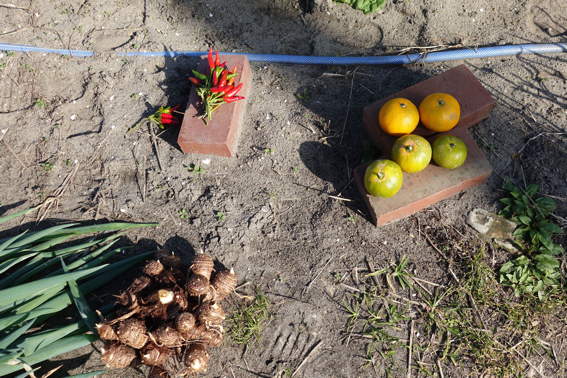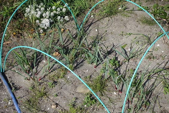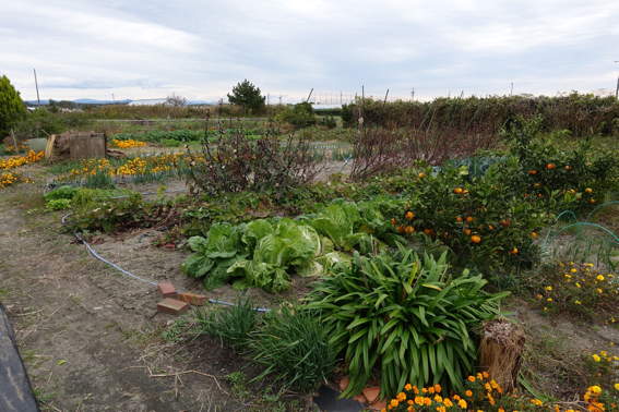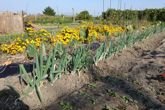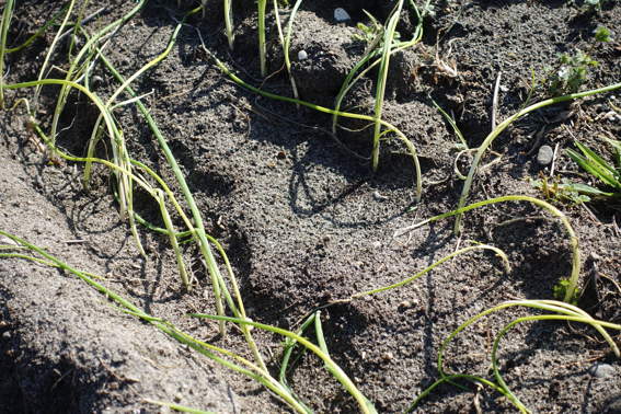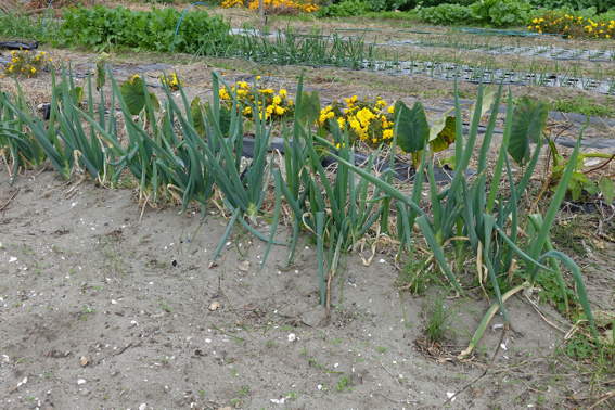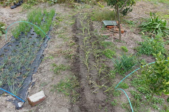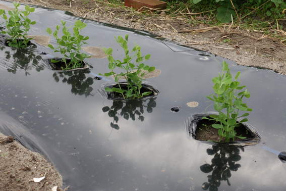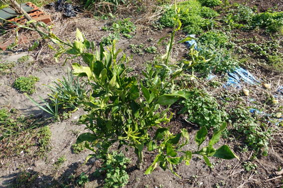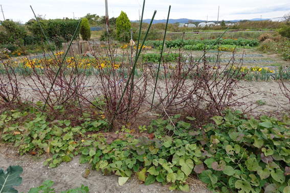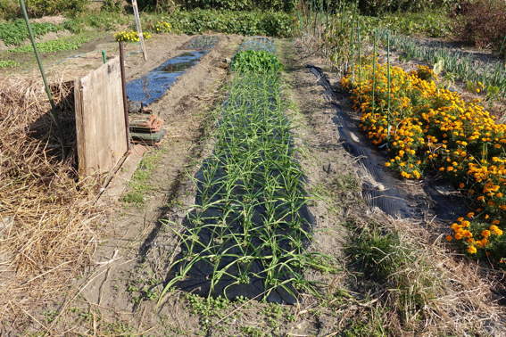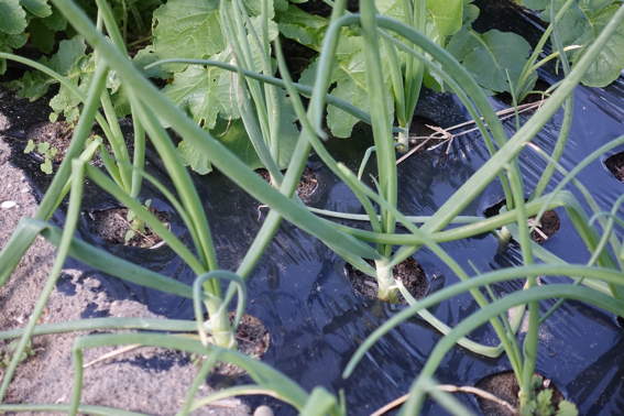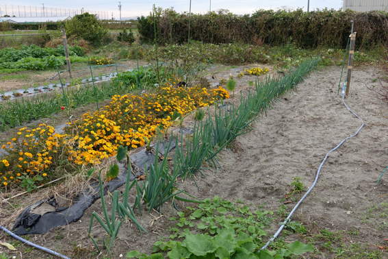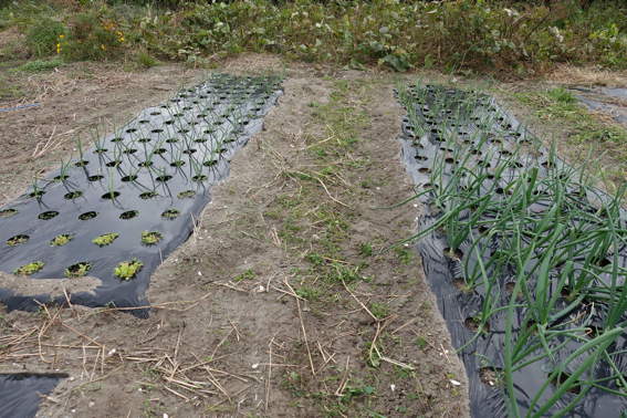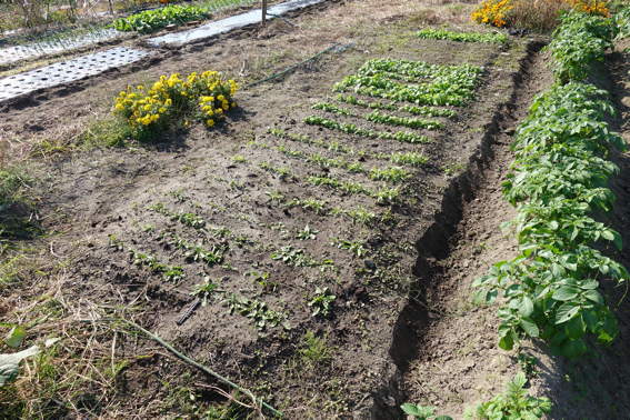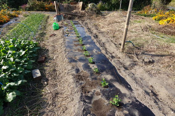 スナップエンドウやタマネギの残りの苗を落花生を収穫した後に